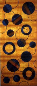 While some of the artists bow to the geometric patterning of traditional quilts, Gerrie Peterson, who was born on a San Rafael chicken ranch and trained as a historical architect specializing in refurbishing buildings to exact reproduction, uses the textures–the actual feel and burnish–of old buildings to inform her abstract images. Geneticist Karin Lusnak forms sheer silk squares into three-dimensional masks that she then works into the fabric canvas of each piece, learning in the process to override her scientific bent for exactitude and instead allow accidents to flourish. Marcia Stein makes oversized graphic pieces that conjure painter Alex Katz’s distinctive style, and Nina Shortridge creates abstracts that could easily be mistaken for acrylic rather than fabric.