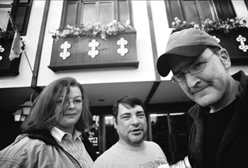 Trail Seekers: Angie Avey, Ed Neil and Tom Voigt pose in front of the Redwood Empire Ice Arena, a place that has uncanny resonance with a spate of unsolved murders.